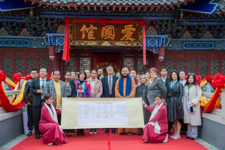12月9日,来自欧美亚非等国的中外知名文化学者、外交官拜访东华禅寺,与中国佛教界知名方丈万行法师一起诵读“东华宣言”,以庄重的仪式感表达了对世界和平与人类可持续发展的祈愿与承担。