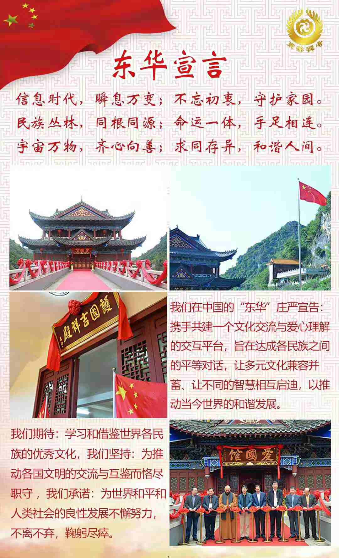 在世界多元文化交织的背景下,不同文化、不同国别的热爱和平的人士用英语、法语、阿拉伯语、阿姆哈拉语、僧伽罗语、塞尔维亚语和中文七种语言共同发出对和平渴望的声音, 宣誓“东华宣言”。