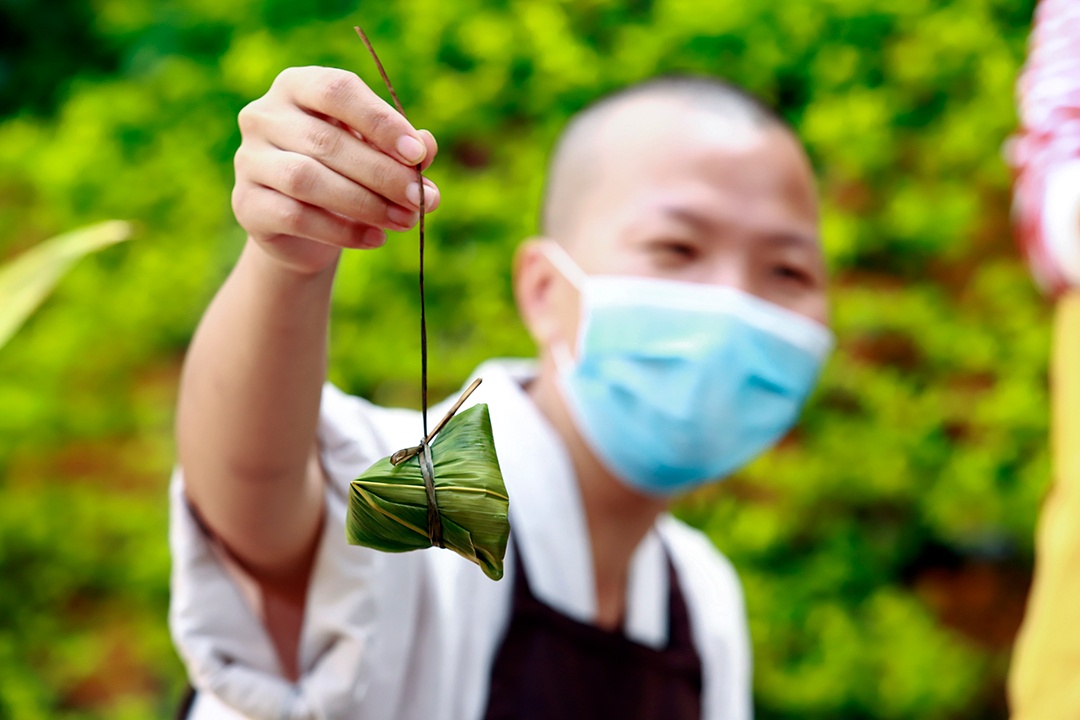 东华禅寺四众弟子以包粽子的方式