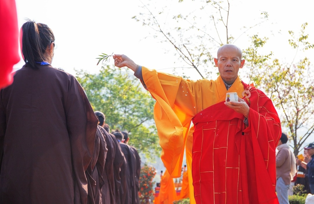 主法法师口念真言,净洒甘露,绕龙王庙,作清净施,为众祈福。与会大众同沾甘霖,共得法喜。