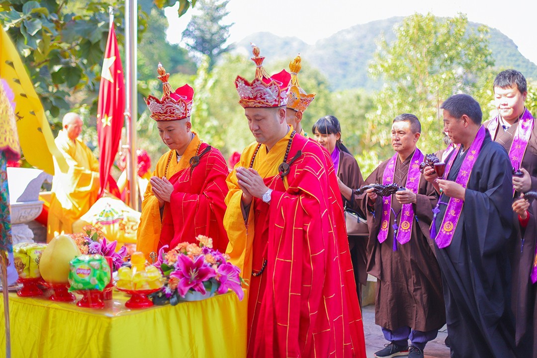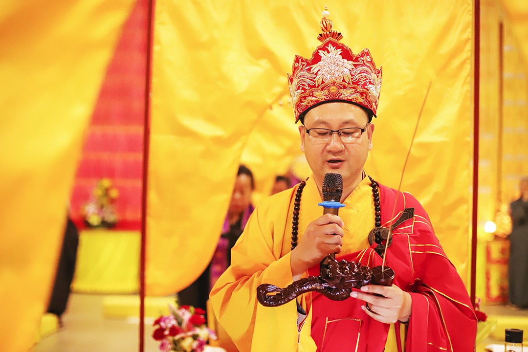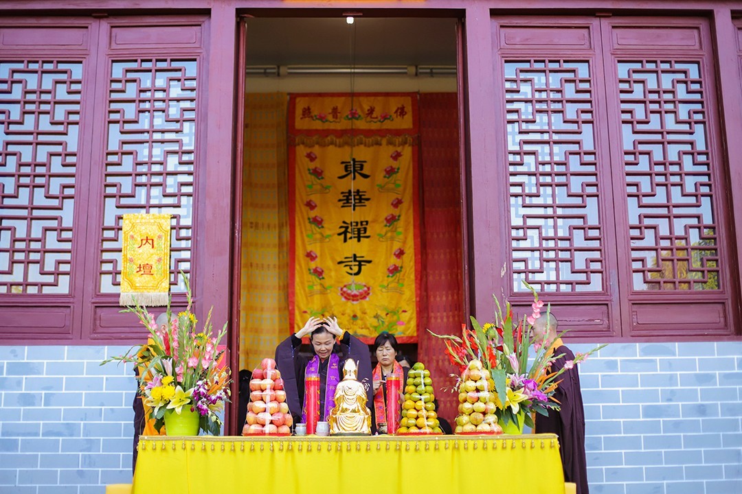 2020年11月10日,东华禅寺“庚子年护国报恩水陆空普度法会”进入第三日,内坛佛事正式开启,自在堂内举行了隆重的结界仪式。
