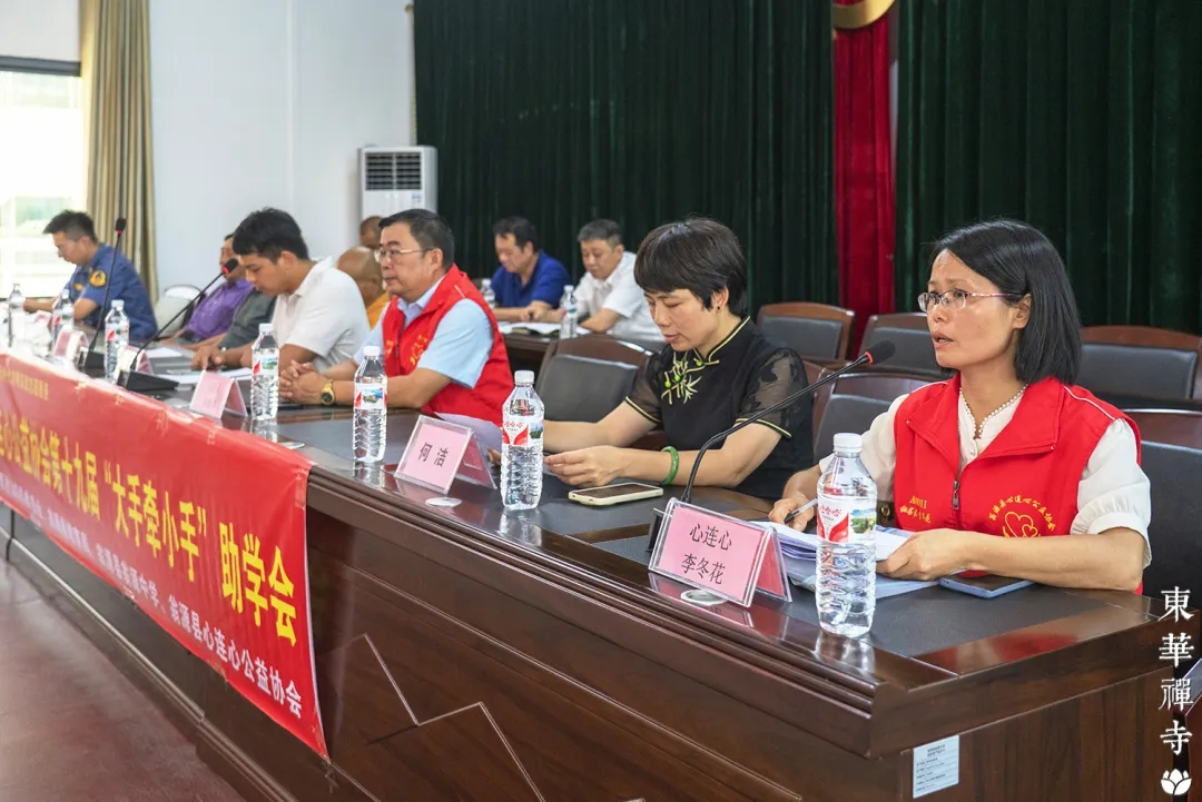 大家好!很高兴能再一次代表东华禅寺参加此次助学活动。恰逢今年是抗战胜利八十周年纪念日,我们深切感受到:祖国能够走到今天,离不开千千万万、各行各业人士的鼎力支持。正是因为大家的团结与奉献,我们才共同迎来了一个又一个胜利。新时代,我们需要更多优秀的人才为国家出力、为民族奋斗,无论来自哪个行业,我们都应当在各自的领域里为国家与民族贡献自己的力量,奉献自己的爱心。在我们中间,有一些家庭环境并不优越的同学。他们同样是祖国未来的中坚力量。自古寒门出英才,他们往往比他人经历更多艰辛,也因此更加珍惜每一次机遇。每当我们看到受资助的孩子如愿考上大学,那一刻,我们由衷地感到欣慰。愿大家珍惜这国泰民安的大好时代,好好学习、刻苦奋斗,将来用实际行动回报祖国、奉献社会!